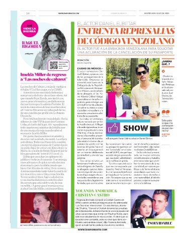 de estar casi acostada, me senté. La señora tes, el personal de la emba- ● El abogado Yuner Colina y el actor Daniel Elbittar.