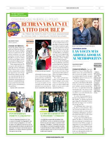 • Pancho Barraza presentó su nue- • La Adictiva sorprendió al grabar el te- dades de México y Estados Uni-