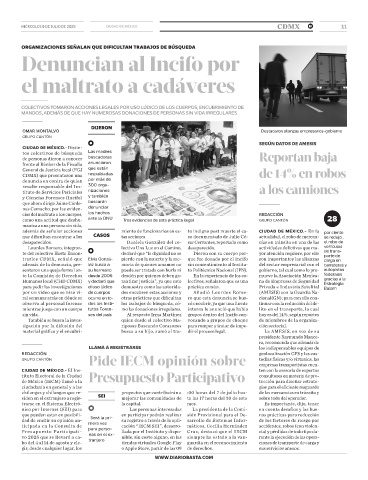 observa al personal forense dos los Insti- los trabajos de búsqueda, có- có encubrir, ya que una fuente tinuar con la reducción del de-