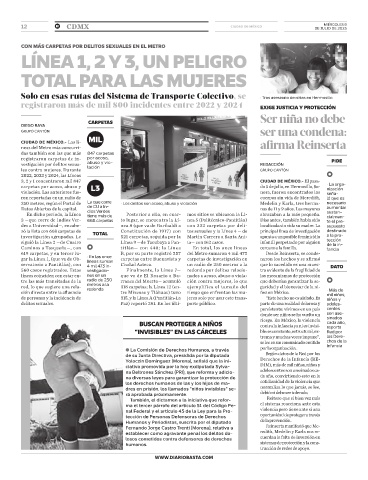 de personas y la incidencia de 315, y la Línea A (Pantitlán-La jeres solo por usar este trans- “Este hecho no es aislado. Es niños y