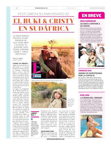 de sus hijas Mar y Alison. • Marco Antonio Solís y su amada Cristian Salas en Africa. vestigación judicial de la Fiscalía Gene-