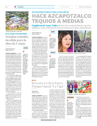 nario de San Pedro Cuajimalpa, yecto por Deportivo Renovación, un es- • La demar- tas y acompañando trabajos de dante en las áreas deportivas