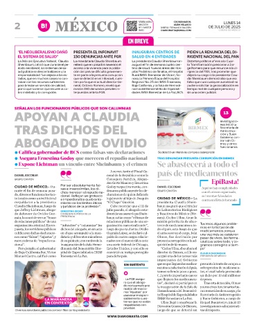 de Baja California Sur, Víctor pital de Especialidades IMSS convirtió en testigo protegido director de Birmex, a él le en- CLAUDIA SHEINBAUM