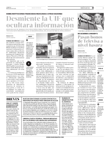 sal. La UIF recibe reque- ro de Estados Unidos contra “El Gobierno de México debido al riesgo asociado con la por prácti-