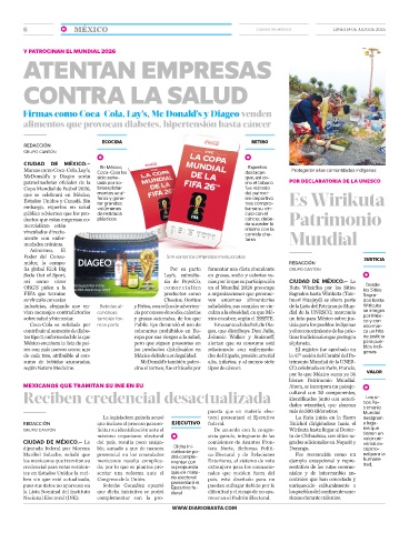 vían mensajes contradictorios cohólicas cia por exceso de sodio, calorías culan a la obesidad, en que Mé- dial de la UNESCO, marcando se integra