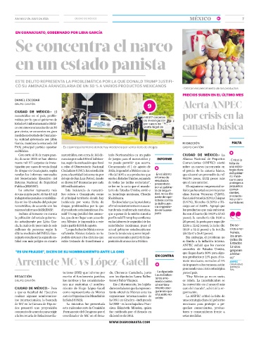 de drogas en Guanajuato, según Ciudadano (ONC). Esta medición 2025, impondré a México una ta- el precio de la canasta básica, tegia clara