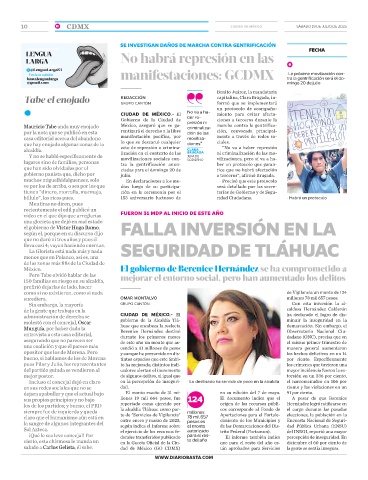 Mauricio Tabe anda muy enojado México, aseguró que se ga- presión ni marcha contra la gentrifica-