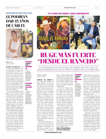 bertad condicional. Ahora, Du- ciado, en el tema “Cándido Don Raúl se sigue reno- primera vez Los Tigres y El