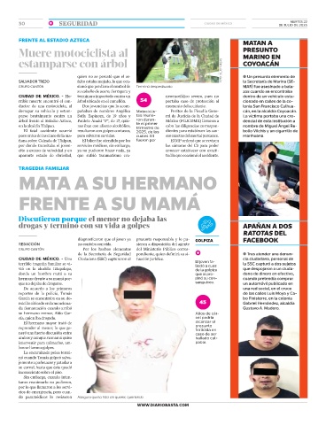 rrible muerte encontró el con- árbol ubicado en el camellón. 54 portaba caso de protección al cionado en calles de la co-