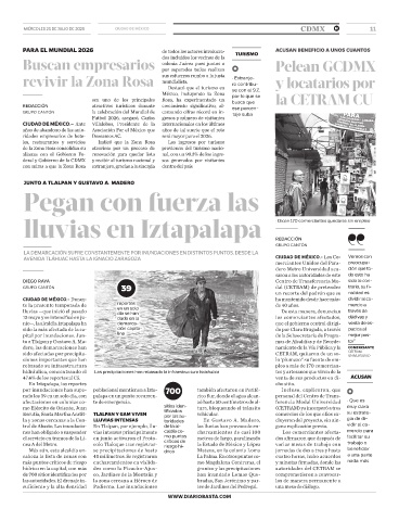 la y zonas cercanas a la Cen- LLUVIAS INTENSAS toridades En Gustavo A. Madero, cluyeron del proyecto, sin nin- gia de di-