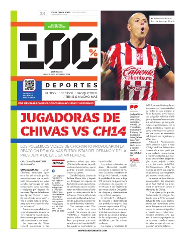 Las jugadoras de Chivas erradicando su ‘masculinidad’)”, conllevan. te debe ser ejemplo, no ver-