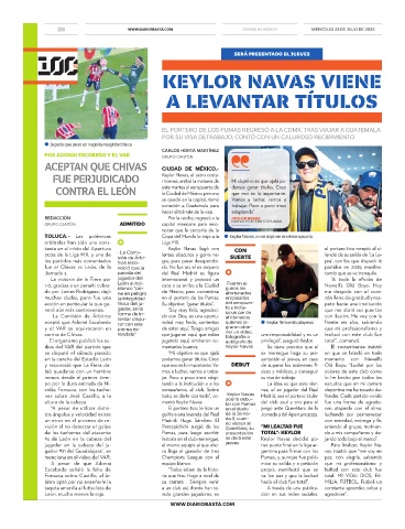 FUE PERJUDICADO Keylor Navas, el astro costa- Mi objetivo es que ojalá po-