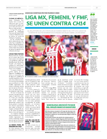 pios y los valores de nues- “En Puma creemos fir- MX y la Liga BBVA MX derados violencia mediá- miento a Chicharito Her-