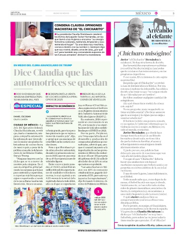 • Hizo Sheinbaum un llamado de calma al sector automotriz Envía tu opinión ricardosevilla40@ yahoo.con.mx