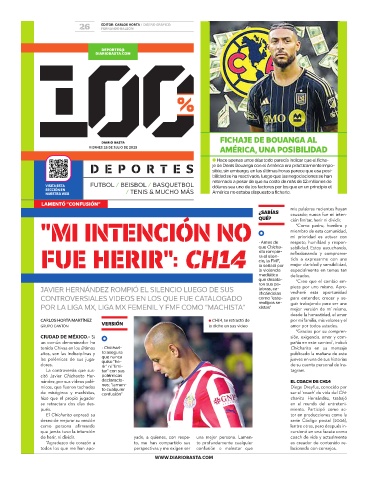 JAVIER HERNÁNDEZ ROMPIÓ EL SILENCIO LUEGO DE SUS labras, ca- vecharé esta oportunidad