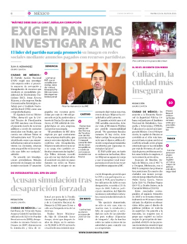 públicos a través de contratos incluso fue sancionada. que la Uni- por posible responsabilidad Culiacán es la ciudad más inse- les
