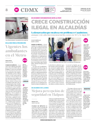 El gobierno capitalino ha cia consideraron inseguro vivir 49.4 % que representa una me- pasó de 57.7
