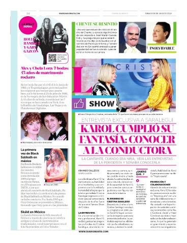 de Black Sabbath en México. Se canceló Saralegui regresara a Uni- le cayó de co "Tropicoqueta" con una