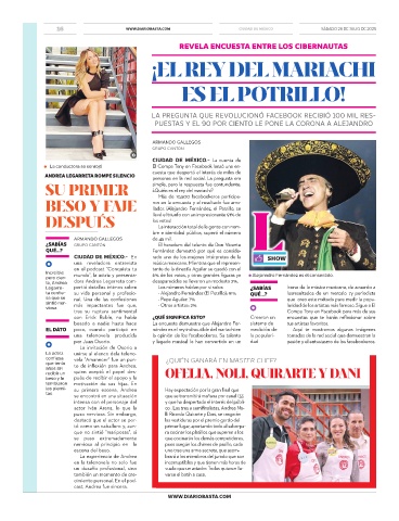 ta confie- su vida personal y profesio- - Alejandro Fernández (El Potrillo): 91% QUÉ...? losresultados de un mercalo 7y periodista