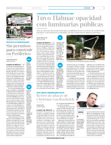 biliario ubicado en Periférico taciona- cepto “Material Eléctrico, Elec- das para via- individual de 11 mil 500, entre la falta de iluminación.