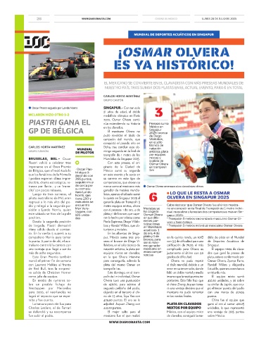 piloto australiano de McLaren tiene 250 y la quinta en Singapur 2025 al 6 OLVERA EN SINGAPUR 2025