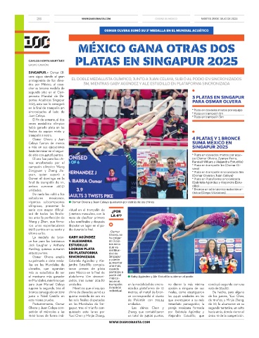 dos por México, al cose- 3M, MIENTRAS GABY AGÚNDEZ Y ALE ESTUDILLO EN PLATAFORMA SINCRONIZADA