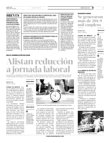 y finalmente 40 en 2029. mientras que las grandes de 48 horas a la semana. • Bajó el número de desempleados