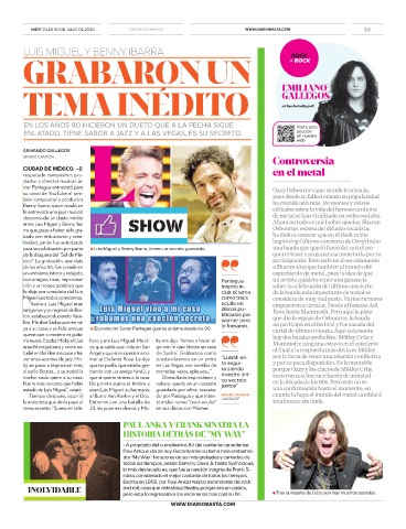 para su publicación por parte ● Luis Miguel y Benny Ibarra, tienen un secreto guardado. una banda que quedó fuera del cartel por