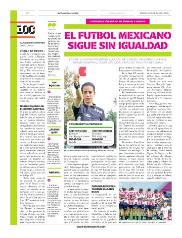 esta temporada recibieron que la Comisión de Arbi- en México es de 3 mil 420 ● Jugadoras de Liga MX piden equidad en sueldos