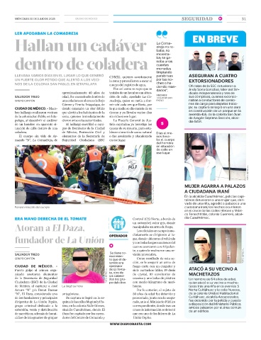 SALVADOR TREJO edad, fue encontrado dentro de ción de calle, apodado La Co- VECINOS sus cómplices, quienes extorsio-