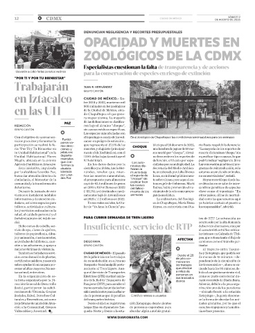 Con el objetivo de acercar ser- el teporingo o conejo de los vol- •En el zoológico de Chapultepec las condiciones son insalubres para los animales