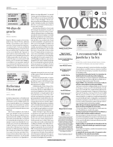 lección, que, en vez de ser útil, ha demos- cambios electorales, entre ellas la de Lo- Impresos. Domicilio de la publicación: Av. Ejército Según Gallup, la aprobación de Donald en EU ha