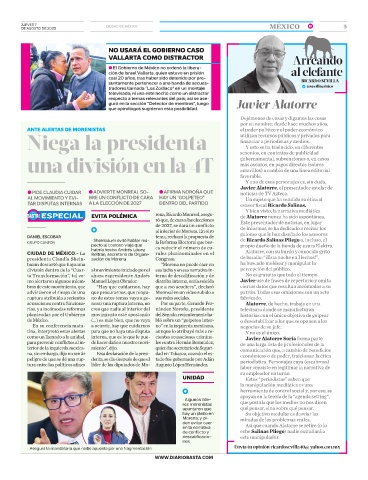 ESPECIAL EVITA POLÉMICA rena, Ricardo Monreal, asegu- de Alatorre nunca ha sido espontánea.