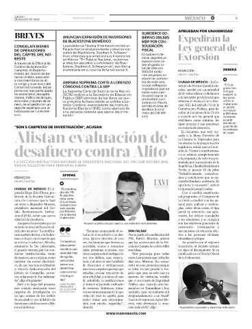 DEL CÁRTEL DEL NO- man, empresa que ampliará sus inversiones El Gobierno fe- Extorsión