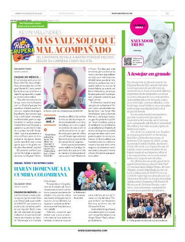 triunfar a los demás”, explicó. hizo colabo- como solista no fue algo im- negocio; si podemos hacer el Día Oficial de La Original Banda El