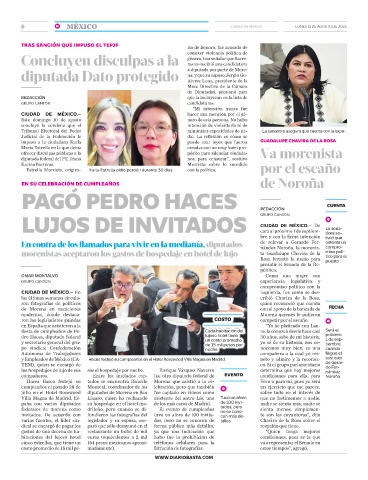 morenistas aceptaron los gastos de hospedaje en hotel de lujo ta Guadalupe Chavira de la miso polí-