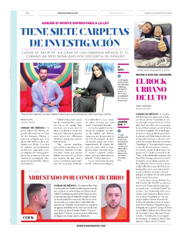 CIUDAD DE MÉXICO.- El dra Itzel, con la que vivió 10 La ley lo puede mandar a lunes el Rock Urbano se vistió de lu-