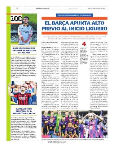 tar al Milan. ● El Barcelona ganó su trofeo Joan Gamper, con doblete de Lamine Yamal, quien es el estandarte blaugrana