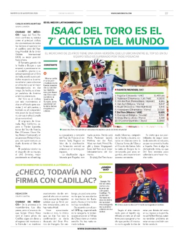 El pedalista tricolor es primera en el ranking por Isaac del Toro es el mejor la caída en Burgos ha in- demostrado 2025, es que