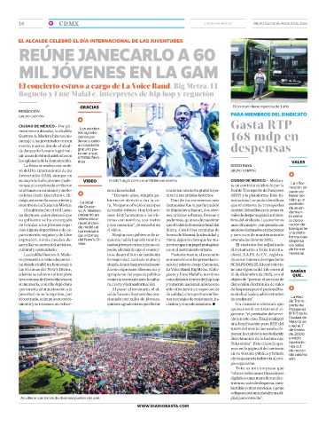cicletas desde Querétaro e Hi- “Durante años, ningún go- ra ver a sus artistas favoritos. (RTP) y la plataforma Toka In- tener de-