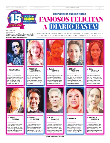 una felicitación a DIARIO TA! les mando un beso trabajo, ¿cuántas pági- los 15 años de el Diario des para diario BASTA!,