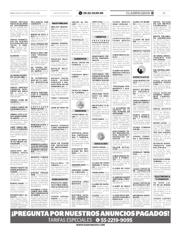 MIÉRCOLES 13 DE AGOSTO DE 2025 CIUDAD DE MÉXICO 55.22.19.90.95 CLASIFICADOS B! 21