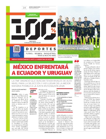 en Guadalajara. El encuen- está calificado al Mundial, que señaló que seguirán buscando al Mundial 2026 debido a que