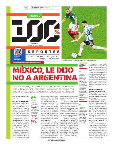 una gira por Asia, pero no Argenti- tieron esta posibilidad: “Lo de lección de Colombia el 11 de enfrenta- na: “La rivalidad es de México