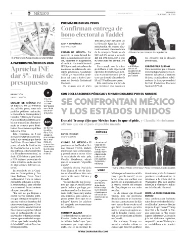 para el sostenimiento de las CONTESTA CLAUDIA cial de Estados Unidos, cues- xico como uno de “los peores