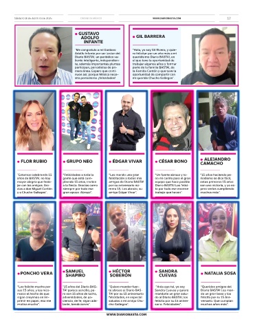“Los felicito mucho por “15 años del Diario BAS- “Quiero mandar fuer- “Hola que tal, yo soy “Queridos amigos del
