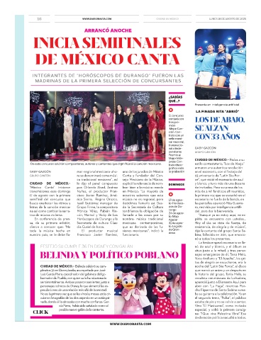 semifinal del concurso que rica Sierra, Regina Orozco, música no es regional, pero 17 de agos- escenario no fue la de la banda, en
