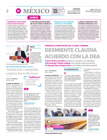 CIUDAD DE MÉXICO.- La • Sheinbaum reiteró que Mé- buscaría desmantelar redes