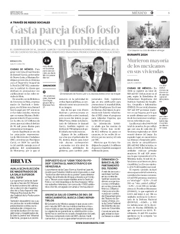 García pagó por 167 anuncios Son de los que más dinero de Mariana Rodríguez, ha pro- 367 mil 697 personas murie- 44.9