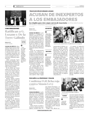 plomático Francisco de la To- no recibió (SEM). nado por falta de trayectoria embajadores deben gozar de